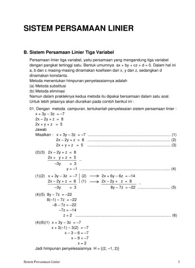Tentukan himpunan penyelesaian sistem persamaan linear tiga variabel di bawah ini. Sistem persamaan linear tiga variabel. 3.3 menyusun sistem persamaan linear tiga variabel dari masalah . Video ini menjelaskan materi matematika kelas 10 tentang soal cerita sistem persamaan linear tiga variabel (spltv).sistem persamaan linear . X /i (satu) / 6 jp.